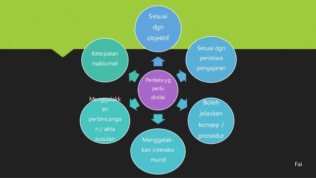 17. Perkara yg perlu dinilai Sesuai dgn objektif Sesuai dgn peristiwa pengajaran Boleh jelaskan konsep / prosedur Menggalak- kan interaksi murid Menggalakk an perbincanga n / akta susulan Ketepatan maklumat Fai