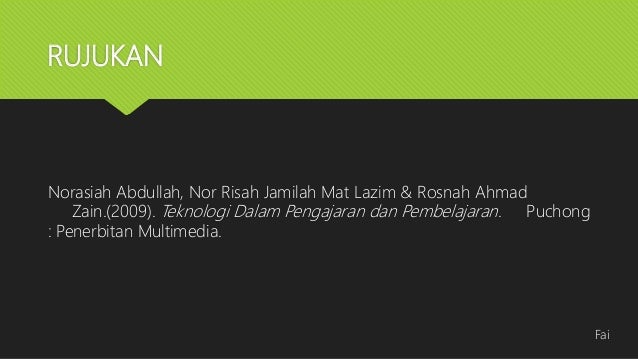 19. RUJUKAN Norasiah Abdullah, Nor Risah Jamilah Mat Lazim & Rosnah Ahmad Zain.(2009). Teknologi Dalam Pengajaran dan Pembelajaran. Puchong : Penerbitan Multimedia. Fai
