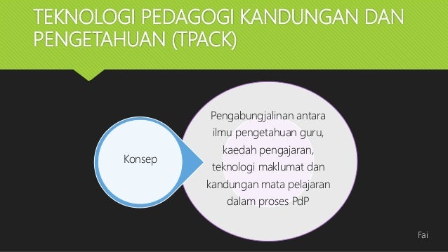 5. TEKNOLOGI PEDAGOGI KANDUNGAN DAN PENGETAHUAN (TPACK) Pengabungjalinan antara ilmu pengetahuan guru, kaedah pengajaran, teknologi maklumat dan kandungan mata pelajaran dalam proses PdP Konsep Fai