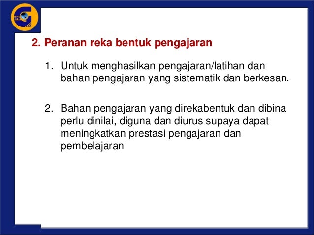 - 10. Apakah peranan reka bentuk pengajaran (RP)?
